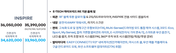 xm3는 re, inspire 두가지 트림으로 출시되었습니다. xm3 하이브리드 트림별 가격은 다음과 같습니다.