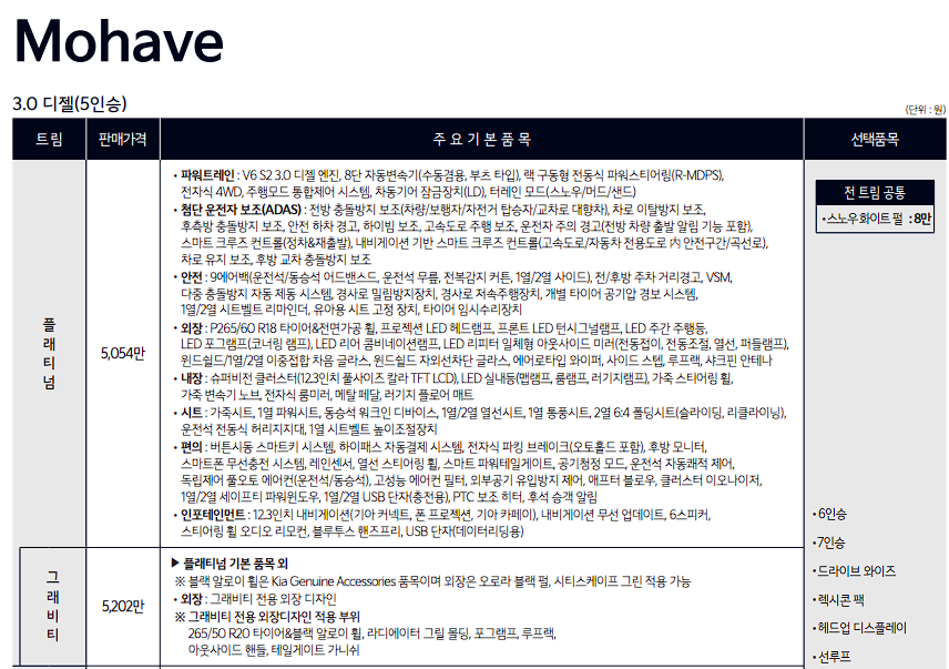 모하비 플래티넘 그라피티 가격 5,202만 원
