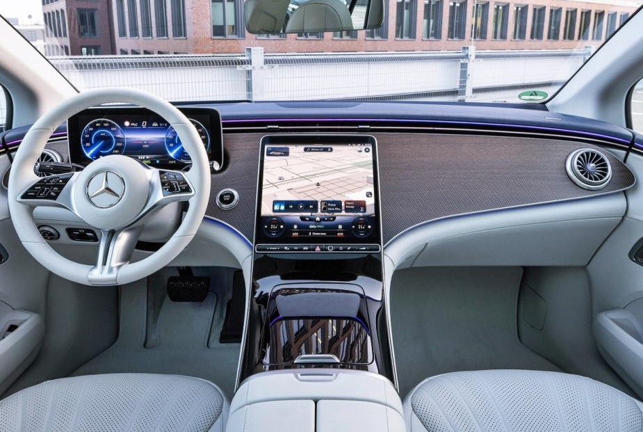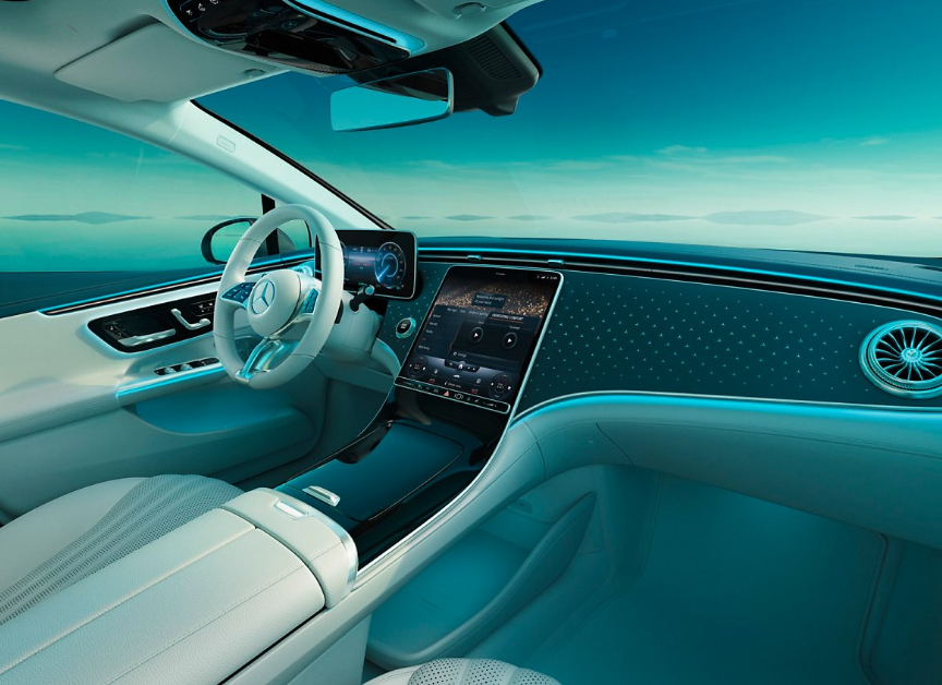간결하면서도 고급스러운 느낌을 전달하는 벤츠 eqe 실내 모습입니다.