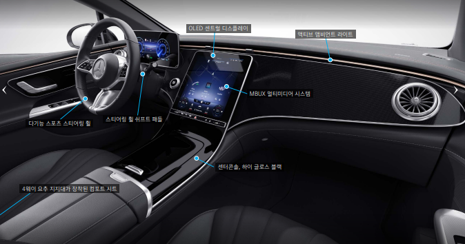 벤츠 eqe 전기차 실내 디자인도 eqs나 s클래스의 실내 디자인과 유사한 모습입니다.