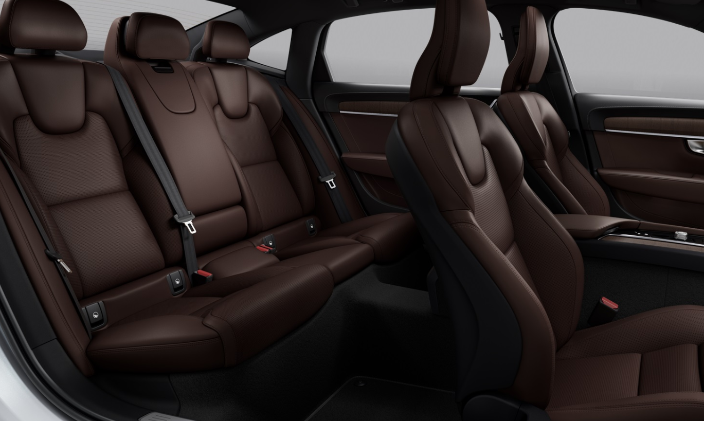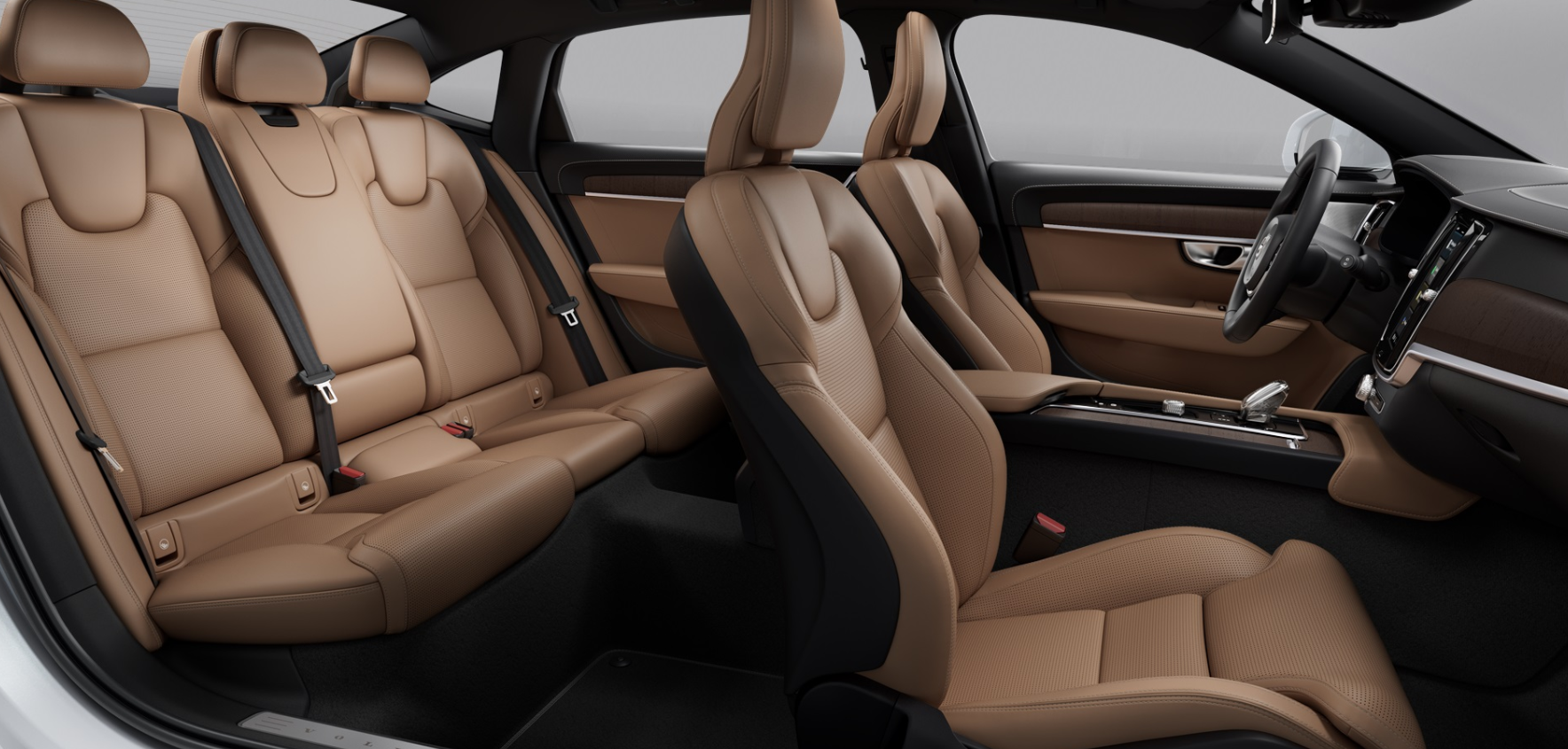 s90 고급 가죽 시트는 편안한 착좌감을 제공하고 실내가 아늑해 보이는 효과가 있습니다.
