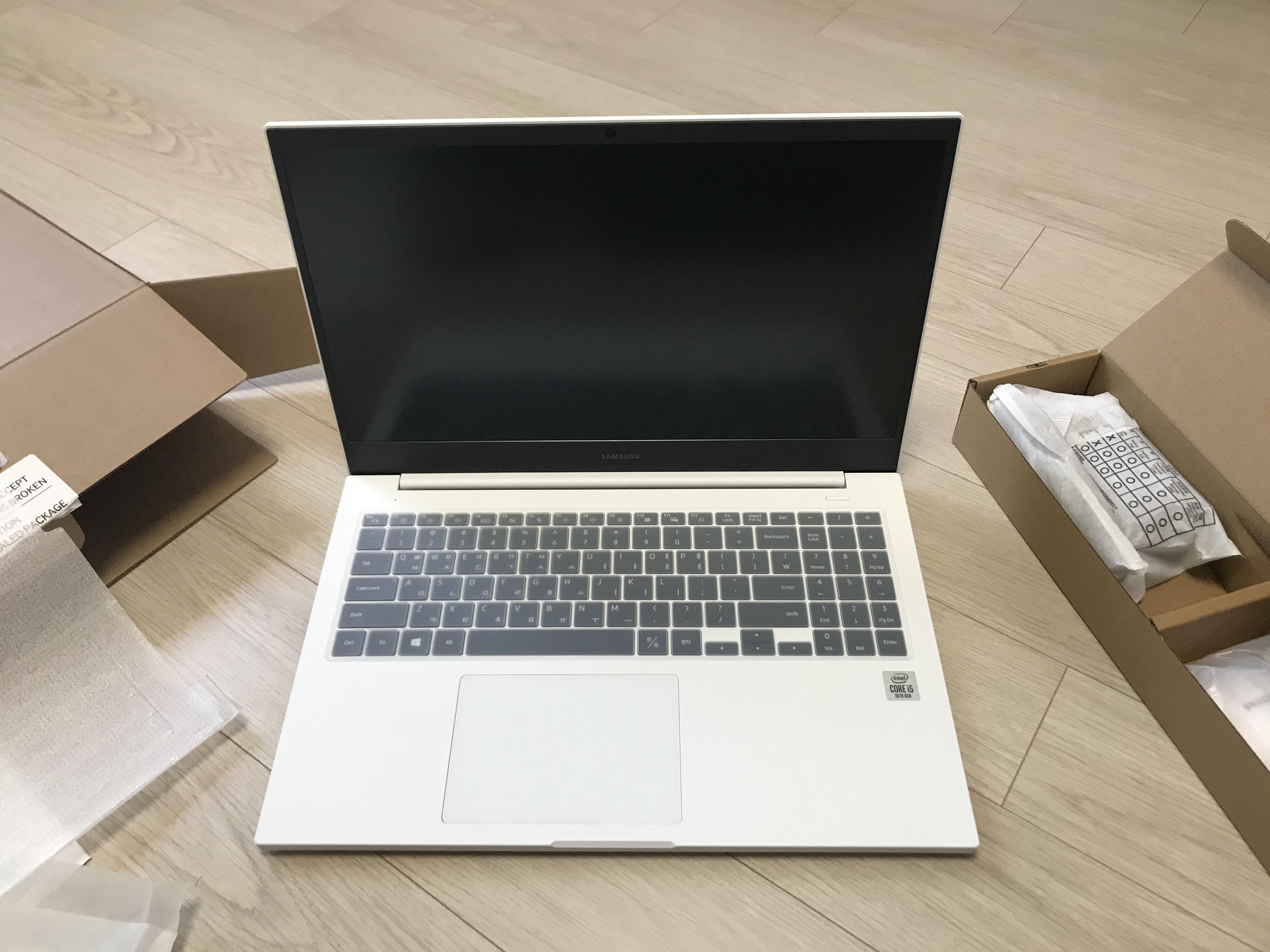 15인치 노트북인데 비해 포장 박스는 생각보다 크지 않았습니다. 2중 박스로 안전하게 배송되어 배송 문제는 특별히 없이 도착하였습니다.