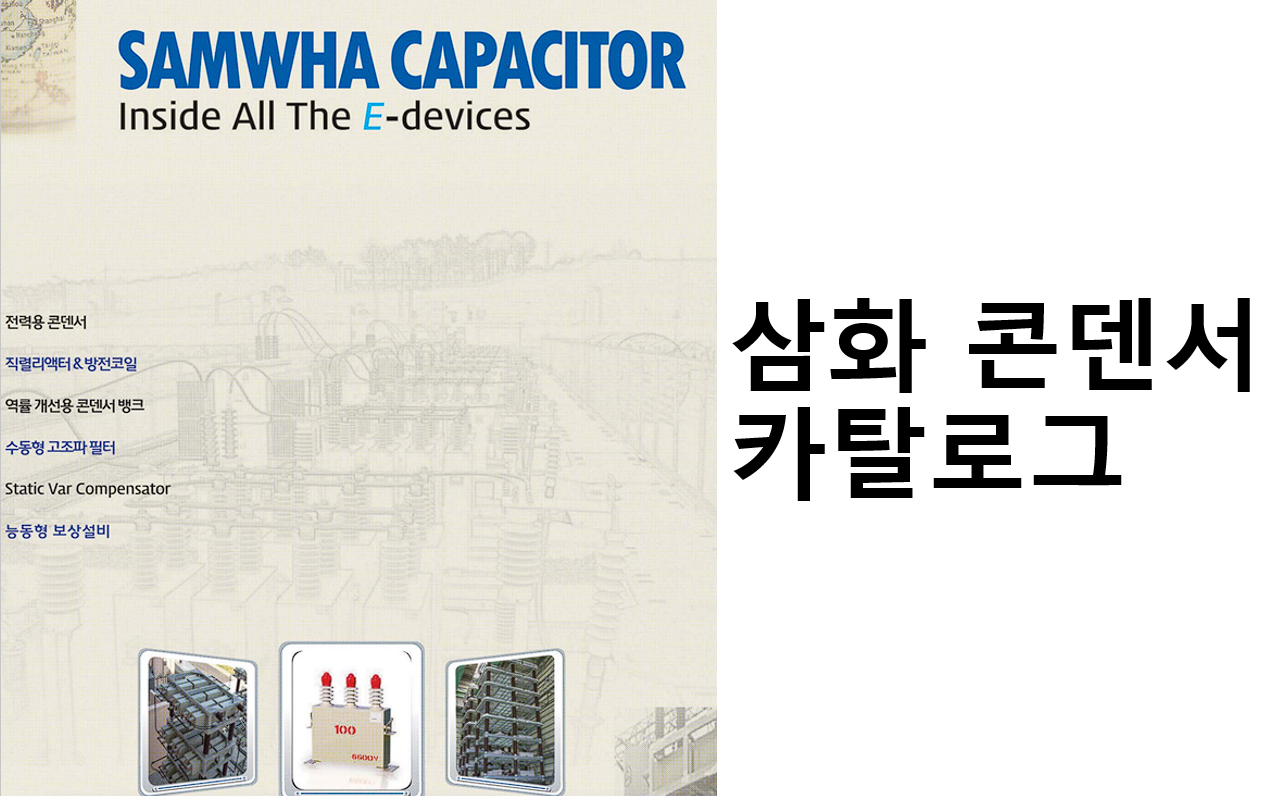 삼화콘덴서 카탈로그를 통하여 전력용 콘덴서, 직렬리액터 방전코일, 역률 개선용 콘덴서 뱅크, 수동형 고조파 필터 등을 알아보도록 합니다.