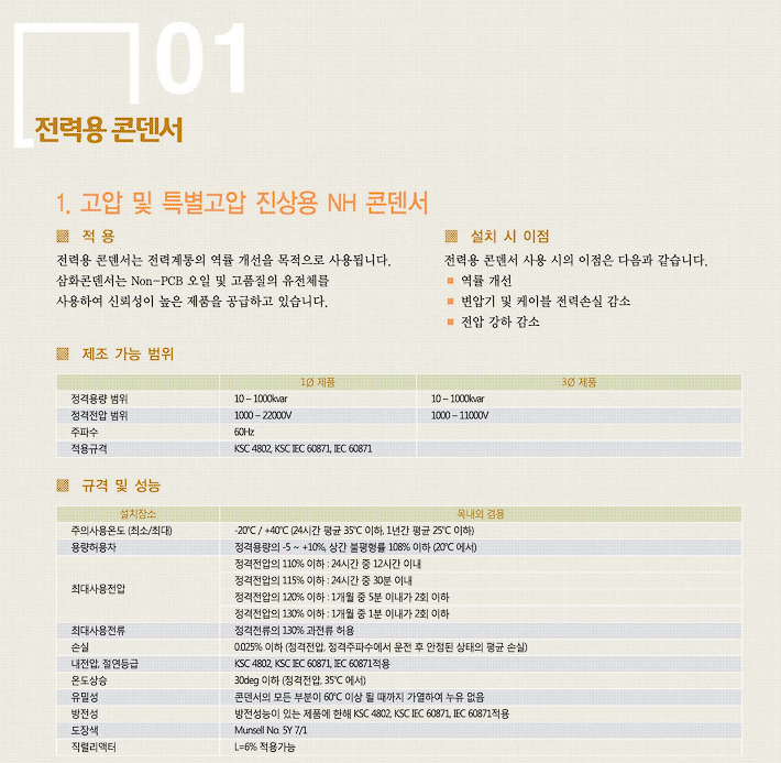 전력용 콘덴서, 고압 및 특별 고압 진상용 NH 콘덴서는 전력 계통의 역률 개선을 목적으로 사용됩니다. 삼화 콘덴서는 non-pcb 오일 및 고품질의 유전체를 사용하여 신뢰성이 노픕니다.