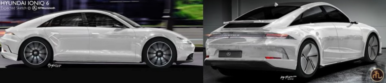 아이오닉 6의 예상도는 여러 가지 모습으로 공개되었습니다.