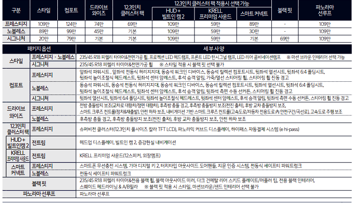 k5 하이브리드 판매 트림은 프레스티지, 노블레스, 시그니처로 구분됩니다.