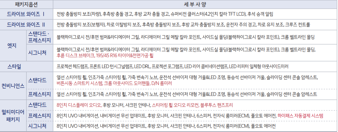 각 트림별 구성, 옵션, 가격을 알아보겠습니다.
