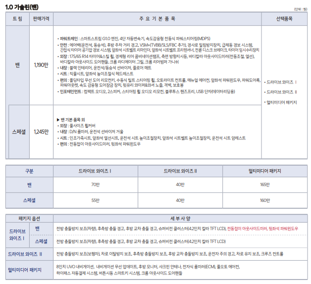각 트림별 구성, 옵션, 가격을 알아보겠습니다.
