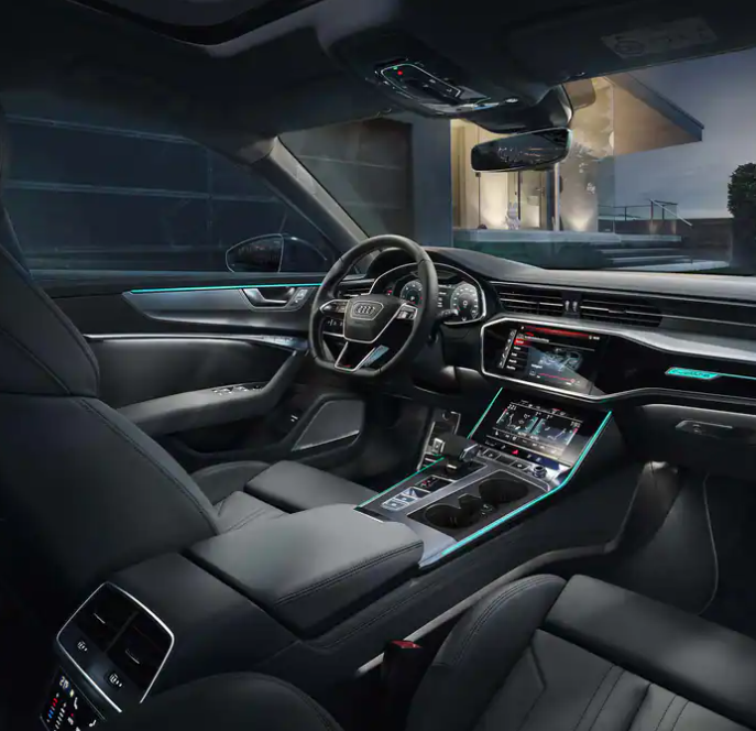 아우디 a6 실내에는 무드등이 적용됩니다. 앰비언트 라이트는 아늑한 분위기의 실내를 제공하며, 30가지의 색상을 탑승자의 취향에 따라서 선택, 적용할 수 있습니다.