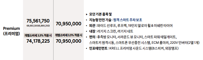 넥소 프리미엄 등급 실제 구매 가격은 3,595만 원부터 3,845만 원입니다.