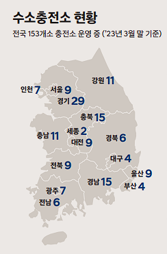 또한, 현재 기준으로 전국 수소 충전소는 153개가 있습니다.