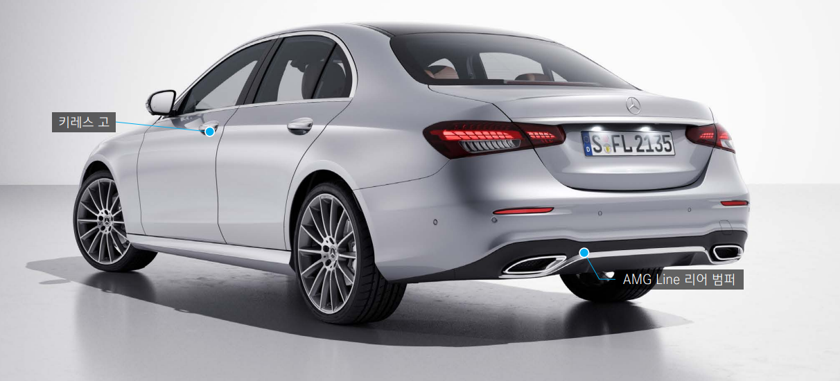 e클래스 상위 모델인 amg line 디자인은 고성능 버전의 디자인을 적용하였습니다.