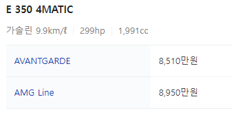 e350은 amg line 모델이 존재하며 e350 가격은 다음과 같습니다.