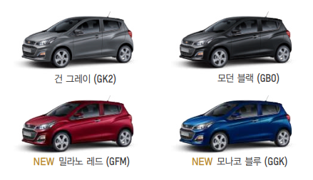 스파크는 총 10가지 외장 색상이 선택 가능합니다.