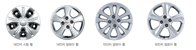 14인치 스틸 휠, 알로이 휠, 15인치 알로이휠, 16인치 알로이 휠로