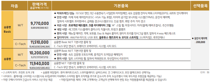 2022 스파크로 차량에는 큰 변화 없이 상품 구성 옵션, 가격에서 약간의 변화를 주었는데요,