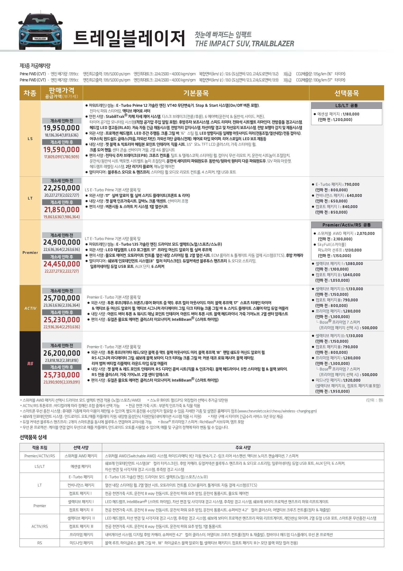 트레일블레이저의 트림은 총 5가지로 구성되어 있습니다.