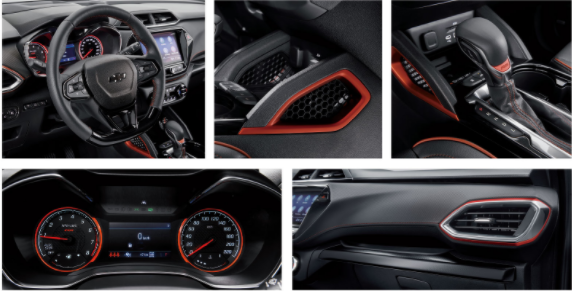 ● 외관 사양 : 투톤 루프(아가타 레드/모던 블랙 중 택1), 블랙 아웃사이드 미러, 블랙 루프랙, 18"팬텀 쉐도우 머신드 알로이 휠, RS 시그니처 라디에이터 그릴, 쉐보레 블랙 보타이, 다크 티타늄 크롬 그릴 바, 카본 데코 로워 페시아, 블랙 레터링, 리어 범퍼 버티컬 리플렉터, 라운드 타입 듀얼 머플러
