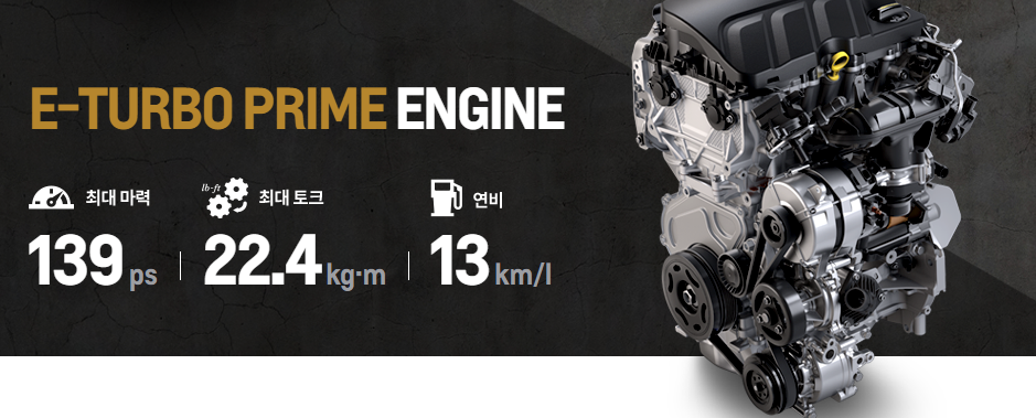 ● 파워트레인/성능 :E-Turbo Prime 1.2 가솔린 엔진, VT40 무단변속기, Stop & Start 시스템(On/Off 버튼 포함),