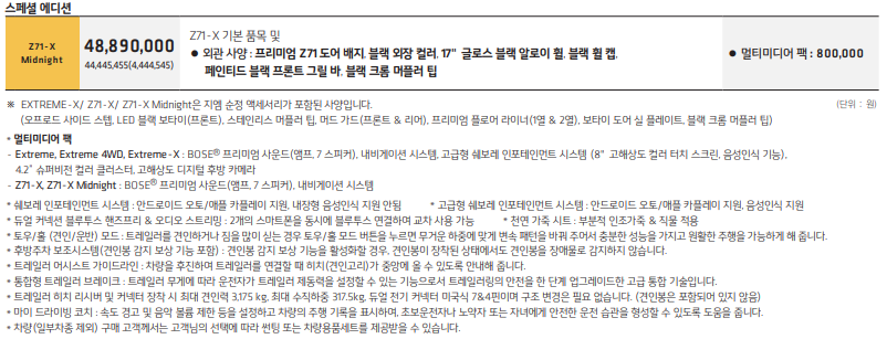 콜로라도 익스트림 4WD 기본 품목 포함 이외