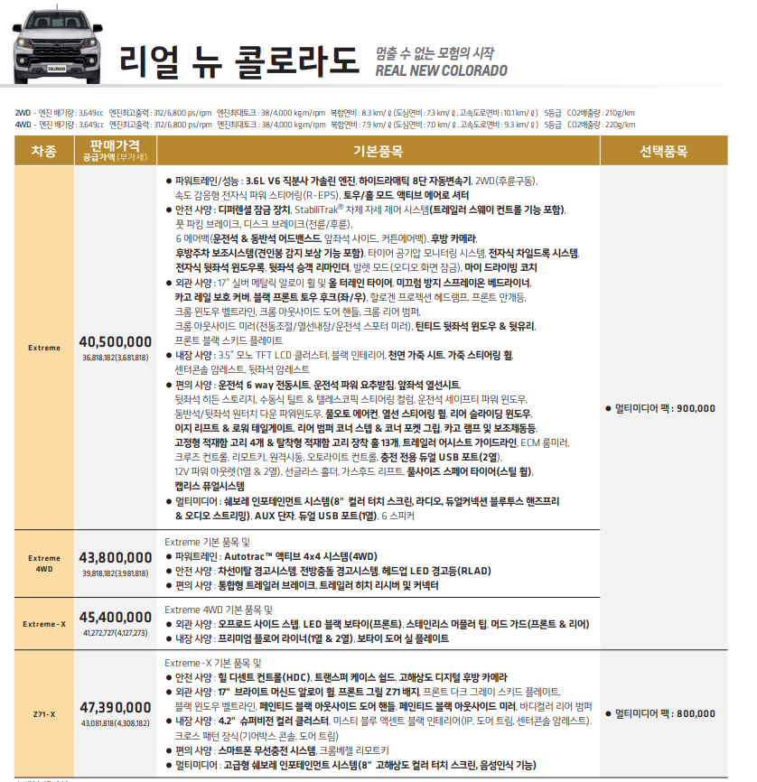 쉐보레 콜로라도 가격을 살펴보겠습니다.