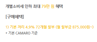 카마로 11월 판매조건, 구매혜택, 프로모션