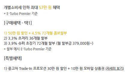 1) 50만 원 할인 + 4.5% 72개월 캄보 할부