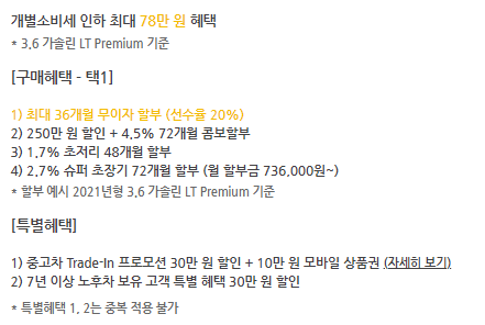 2) 250만 원 할인 + 4.5% 72개월 캄보 할부