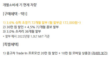 1) 3.6% 슈퍼 초장기 72개월 할부 (월 할부금 172,000원~)