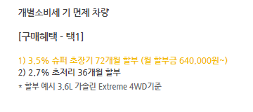 1) 3.5% 슈퍼 초장기 72개월 할부 (월 할부금 640,000원~)