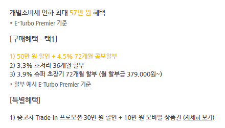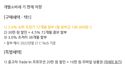 2) 30만 원 할인 + 4.5% 72개월 캄보 할부