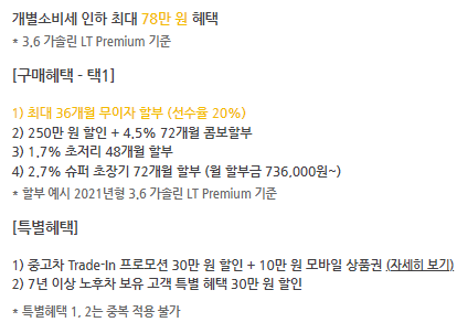 * 할부 예시 2021년형 3.6 가솔린 LT Premium 기준