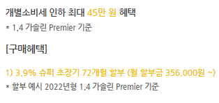 * 할부 예시 2022년형 1.4 가솔린 Premier 기준