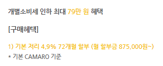 카마로 2022년 12월 판매조건, 구매 혜택, 프로모션