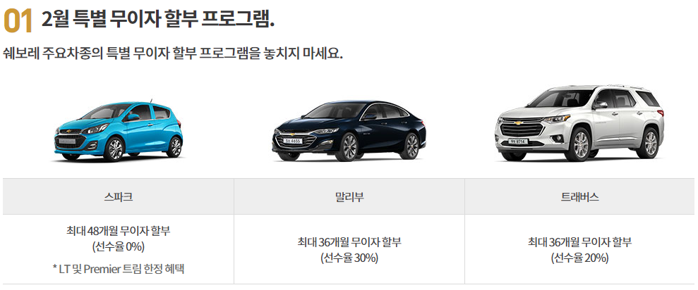 2월 쉐보레에서는 특별 무이자 할부 프로그램을 진행합니다.