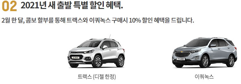 또한 트랙스 디젤, 이쿼녹스 구매 시 10%의 할인을 제공합니다.