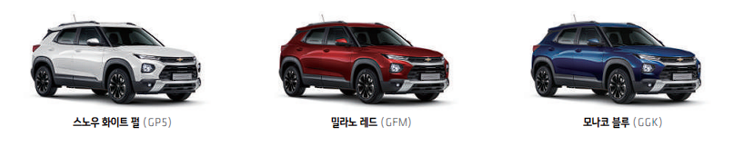 쉐보레 트레일블레이저는 3가지 트림으로 나누어 판매 중입니다.