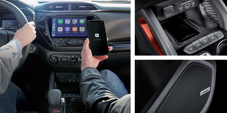 트레일블레이저는 젊은 소비자들의 취향에 맞게 애플카플레이, 보스 스피커 등의 기능이 옵션으로 제공됩니다.