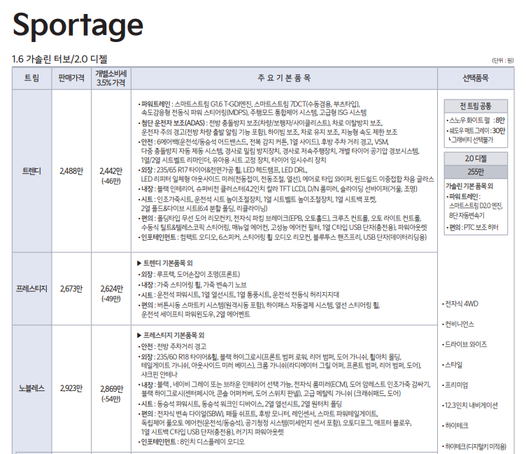 현재 스포티지 가격으로 lpg 모델의 가격을 유추해 보겠습니다.