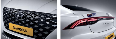 반광 크롬 라디에어트 그릴은 그랜저 전면을 보다 세련된 모습으로 보여줍니다.
