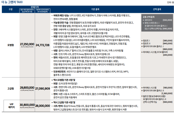 2021 그랜저 택시 가격표는?