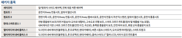 | 컴포트Ⅰ [380,000] ▶ 컴포트Ⅱ [940,000] ▶ 멀티미디어 내비 플러스Ⅰ [890,000] ▶ 하이패스 시스템, ECM 룸미러 [240,000] |