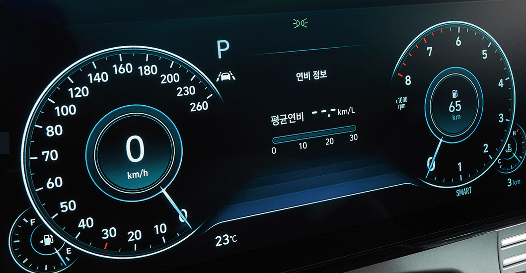 이는 시안성이 높고 정보파악이 용이하며, 주행모드별 차별화된 그래픽은 다소 심심할 수 있는 계기판을 화려하게 꾸며줍니다.