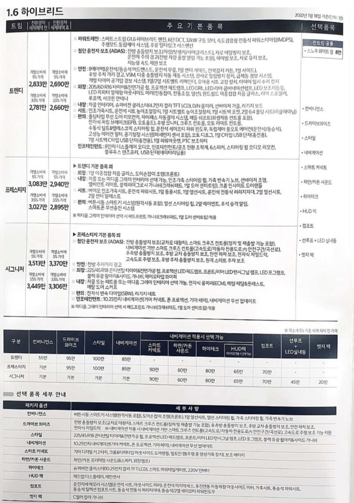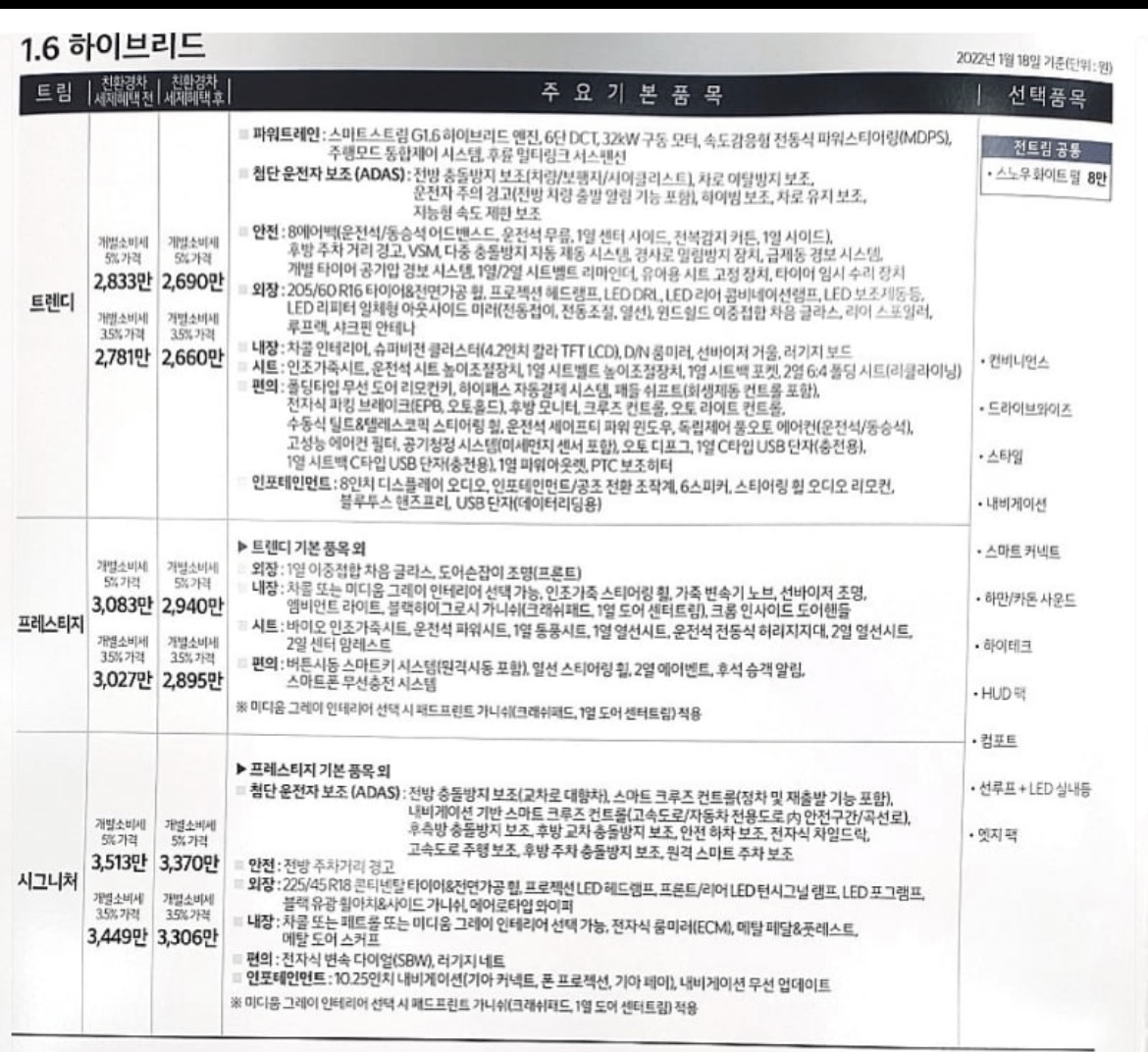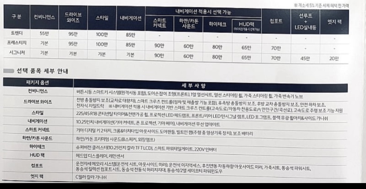 니로 프레스티지는 중간 트림으로 최소 이정도 트림을 구매해야 할것 같습니다