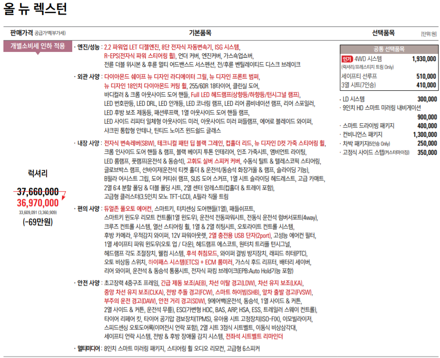 신형 렉스턴 사양, 가격, 가격표(2021)