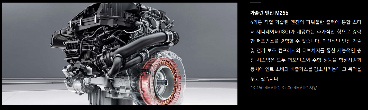 s클래스 가솔 엔진은 6기 통 가솔린 엔진으로 폭발적인 출력을 보여주고 있습니다. 강력한 힘으로 큰 차체의 s클래스를 움직이는데 충분힌 출력을 보여줍니다.