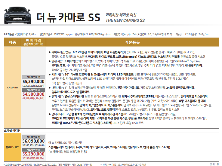 쉐보레 더 뉴 카마로 ss 가격표