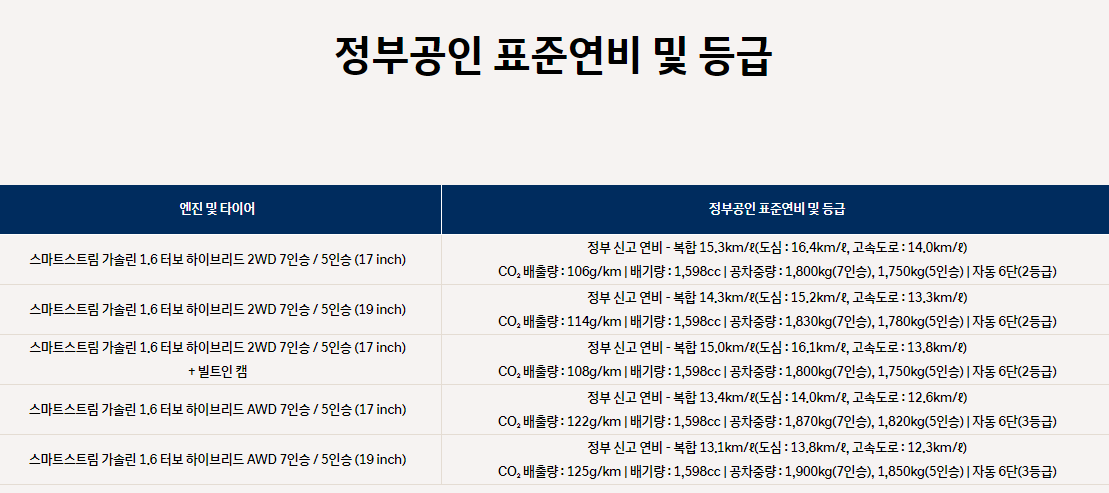 싼타페 하이브리드 가격표