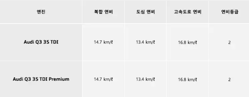 아우디 q3 연비의 경우 14.7km/l의 복합 연비를 보여주고 있습니다.