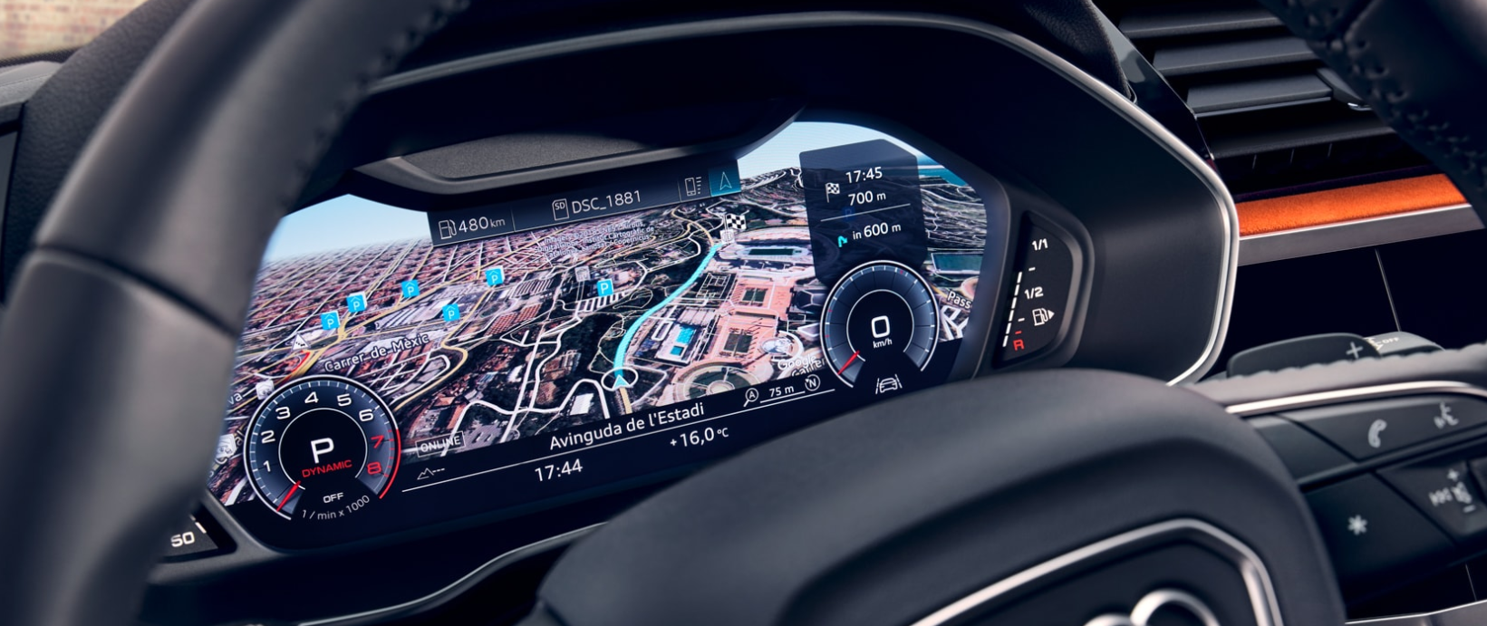 아우디 버추얼 콕핏 플러스는 MMI 기능들을 통합하여, 도로와 엔진 속도 이외에도 뮤직 트랙과 아우디 커넥트 서비스에 대한 정보를 표시해줍니다.